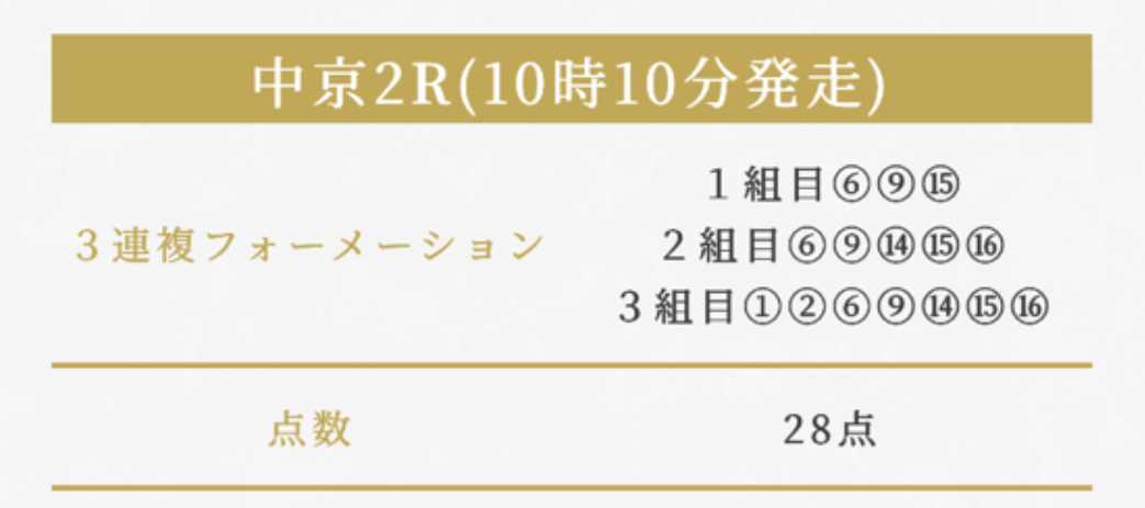 中京2Rの3連複フォーメーション予想28点です。