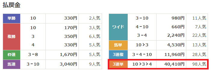 3連単は3番人気⑩に2番人気⑧を1着にプラスしたフォーメーション