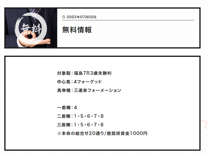 少点数買い目のご提供!