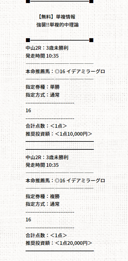 よっしゃ!無料情報のこの予想のまま買って三連複的中で6万GETだぜ!
