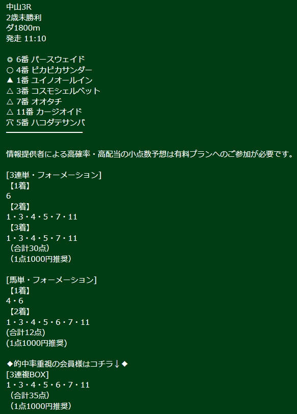 その前の中京2&中山6の無料情報では40万5400円、トータル短日3レースで50万近く稼がせてもらいました。