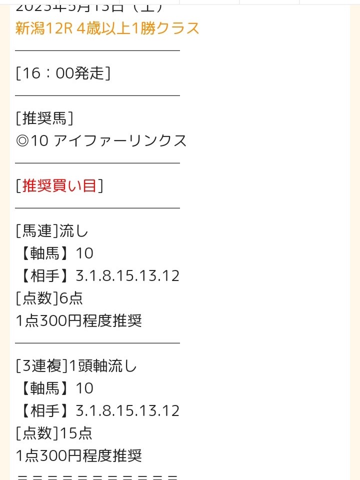 だめでした、一応日曜日の無料情報です。 スクショしておきました。