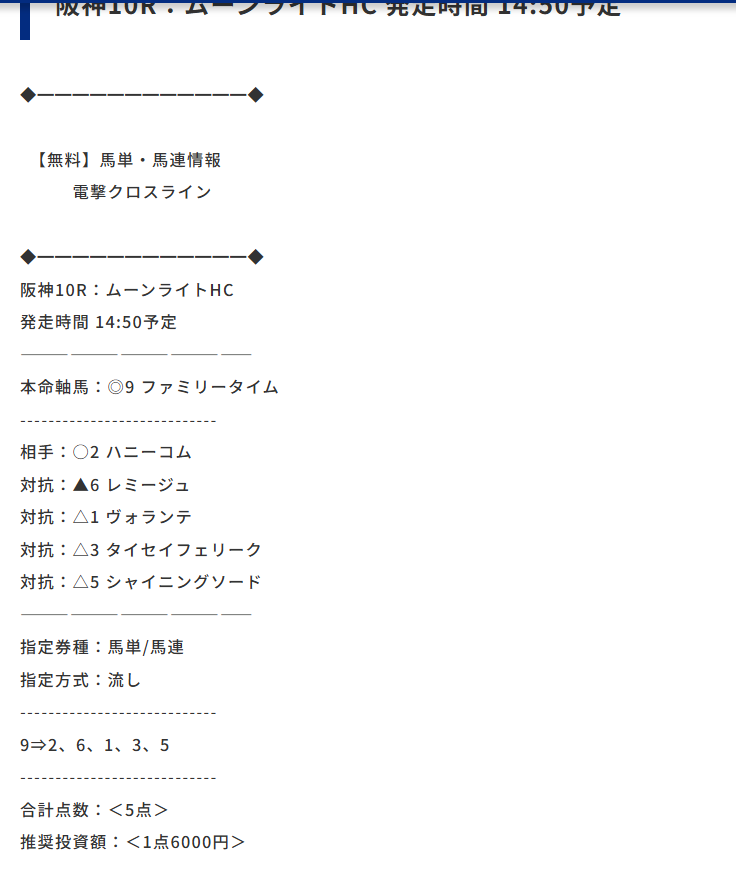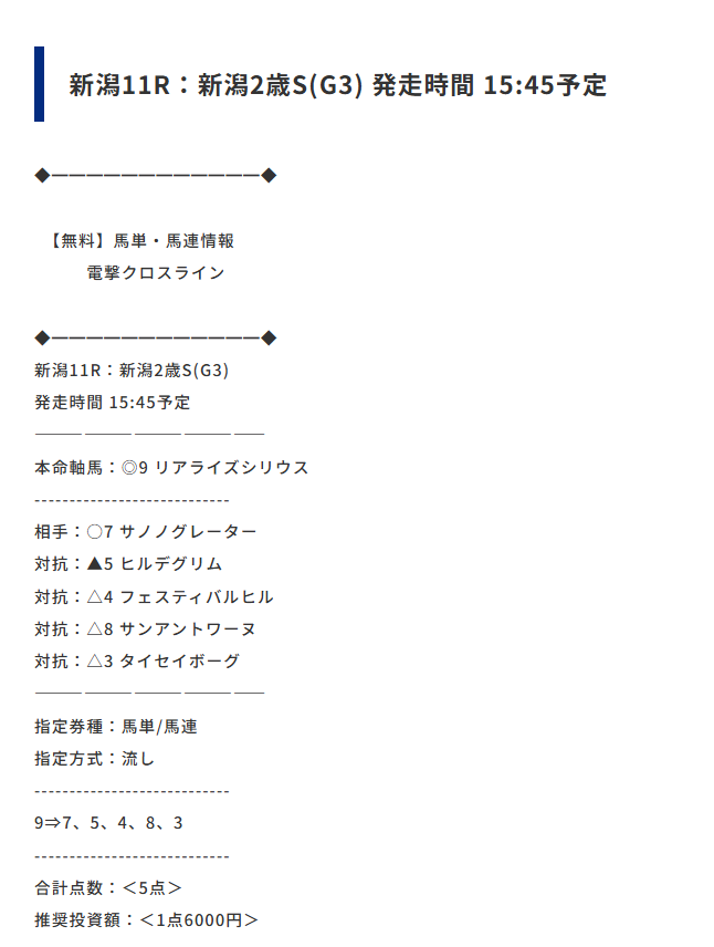 逆転の週末の無料情報は新潟2歳Sのほかにこちらも当たっていましたよ~
