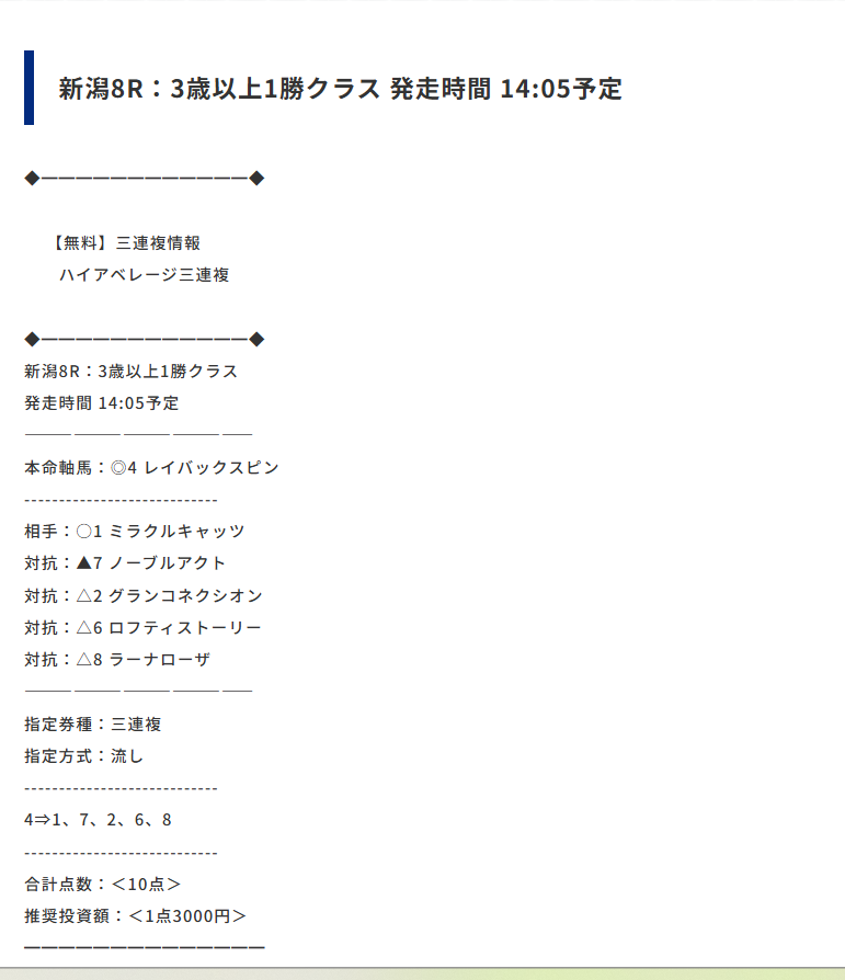 こちらはありがたいけど有料情報もっと回収率いいんだろうな