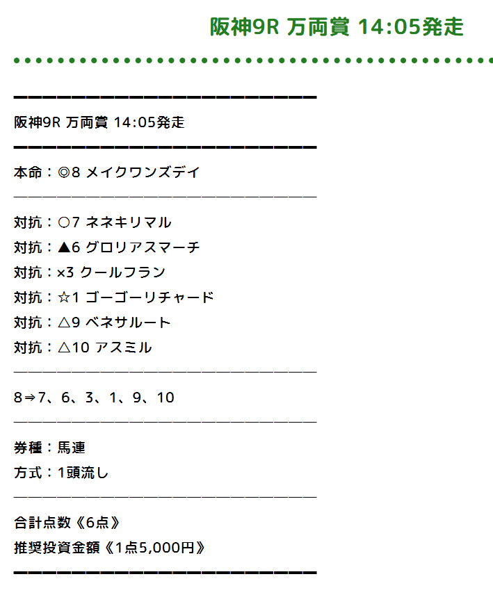 点数広げて的中は二流だと思っています、いかに点数を絞るかが競馬の醍醐味です