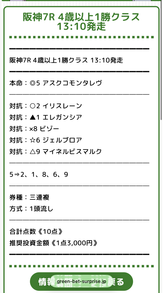 無料で出してた三連単でこの高額的中はすごすぎます!! 今回200円しか買ってなかった自分が情けない…給料日が毎月10日で、ガチガチの給料日前で推奨金額通り買えなかったのが悔やまれます…! 推奨通り1000円で買ってた人は大儲けですよねー!! みどりの的中らんどさんすごすぎです!! こんな当たる予想会社さん初めてです!!