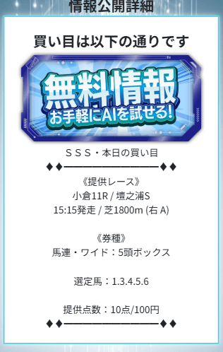 無料予想で48,600円勝ちならリピありだな
